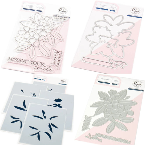 Pinkfresh Studio - Plumeria - Stamps, Dies, Stencils and Press Plates Bundle