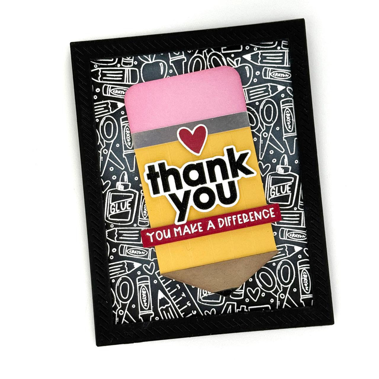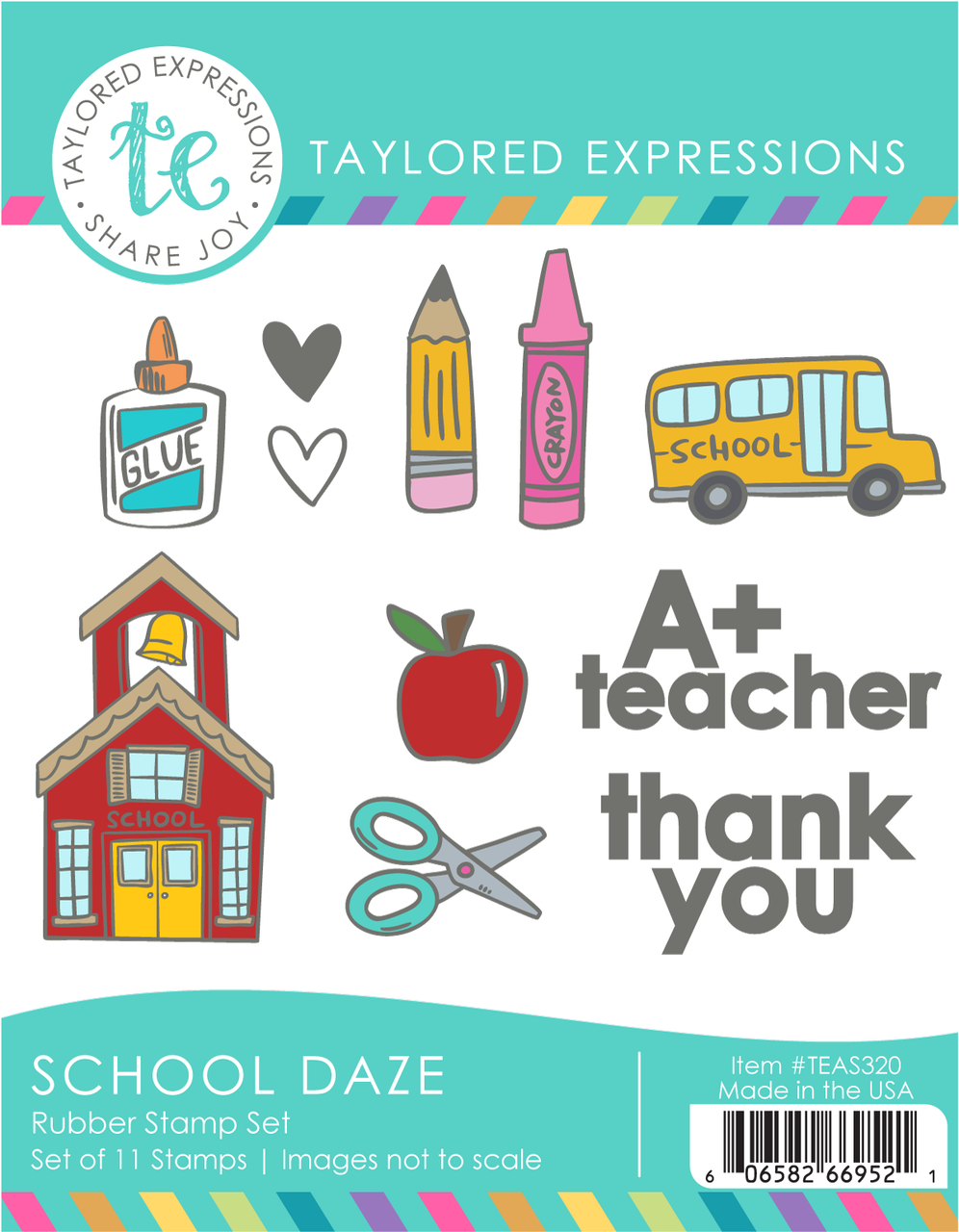 Commemorate the new school year, thank an amazing teacher, or celebrate a school-year milestone with the School Daze Stamp Set! This rubber stamp set features school-themed images like a bus, glue, pencil, and more, all in the same playful illustration style as the Classroom Canvas 6x6 Background Stamp (sold separately). These images are perfect for coloring in and offer the flexibility to pick and place exactly what you need for your project. Just stamp using your favorite TE Premium Ink and use the coordinating School Daze Dies (sold separately) to cut your stamped images with precision and add dimension and versatility to your classroom-themed cards and crafts.